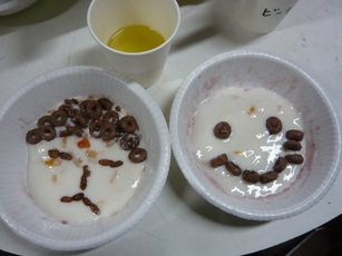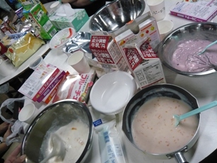 写真で見ると少々グロテスクですが、はい、みんなでわいわいギャグをとばしながら三種類のフルーチェをいただきました。ここ近年アルトはハンバーガー1人7個とかマッ○ポテト150個分とか、リアルにしんどいことをやっていたので、今年はそれに比べ格段に平和でした・・・(笑)